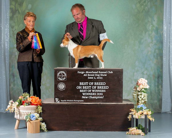 Above- Cole goes BOW, BOB & BOBOH to finish his Championship under Joanne Buehler at Fargo-Moorhead KC in only 6 show weekends at 17 months old. Photo Courtesy of Kaytlin Winkels Photography