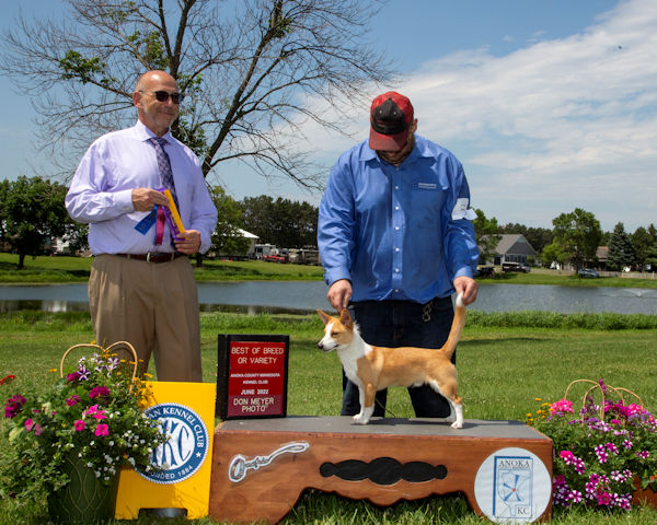 Below- Cole goes BOW, BOB & BOBOH for a 3 pt Major under Edmund Dziuk at Anoka County MN KC his first show at 6 months & 4 days old. Photo Courtesy of Don Meyer Photography.